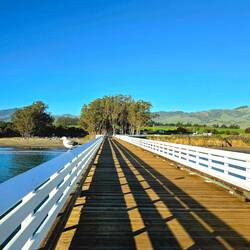 Wir schauen uns stattdessen die "Stearns Wharf" - einem weit in das Meer herausragenden hölzernen Pier - an. Früher gebaut, um auch ozeangängigen Schiffen bei Ebbe eine Anlegemöglichkeit zu bieten.