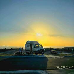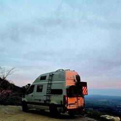 Nur die Stellplatz-Suche gestaltet sich schwierig: Also fahren wir von der Küste ins Landesinnere und übernachten auf einem "Aussichtspunkt ohne Aussicht" auf einem Berg.