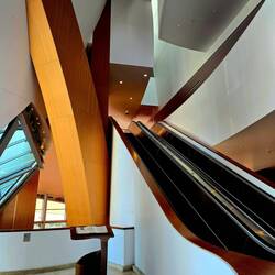 Die Fassade ist mit Edelstahl verkleidet und es gibt keine rechten Winkel an dem Gebäude. Aufgrund massiver Betonwände schwingt das Gebäude nicht und verfälscht somit nicht die Musik. Das Gebäude ist kostenlos zugängig und mit einem Audioguide konnten wir viel über die Geschichte des Hauses erfahren.