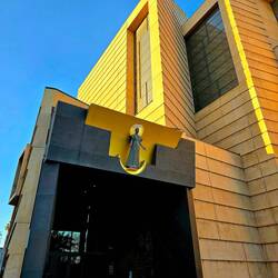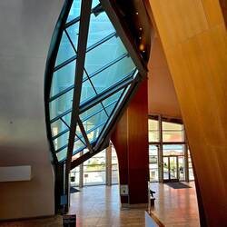 Aber auch das zweigeschössige Gebäude ist sehr sehenswürdig. Es besteht aus Betonsteinen, die mit Fieberglas überzogen sind und Öffnungen haben, um Licht ins Gebäude zu bringen.
