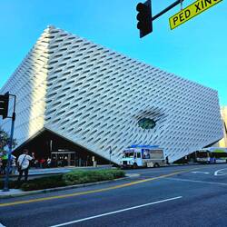 Direkt daneben war unser nächster Besichtigungspunkt: "The Broad" ist ein Museum für zeitgenössische Kunst und wurde von dem Milliardärspaar und Kunstmäzenen Ely und Edythe BROAD gebaut, um nach ihrem Tod ihre Kunstsammlung der Öffentlichkeit zugänglich zu machen. Der Eintritt ist kostenlos und so werden auch junge Leute, die sonst eher nichts mit Kunst am Hut haben, an Kunst herangeführt.