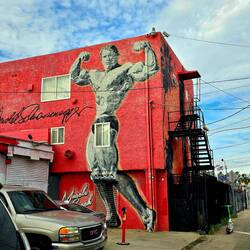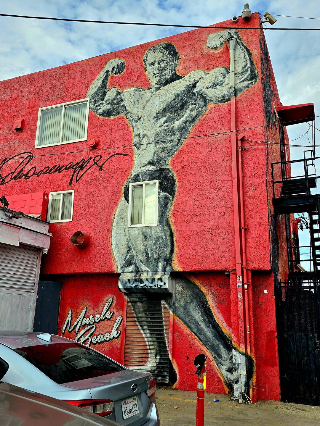 Als erstes musste ein Versäumnis nachgeholt werden. Anette hatte im Nachhinein erfahren, daß in VENICE BEACH ein riesiges Wandgemälde von "Arnie" Arnold SCHWARZENEGGER zu sehen ist. Das musste natürlich noch abgelichtet werden.