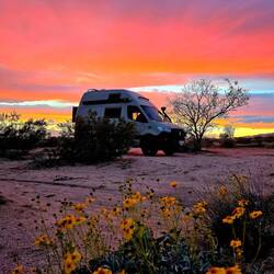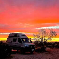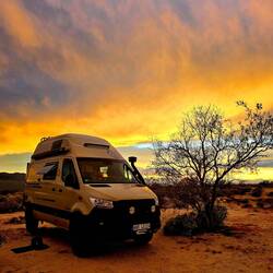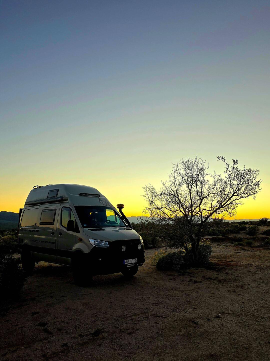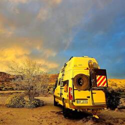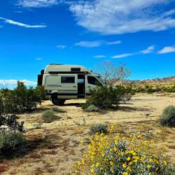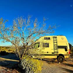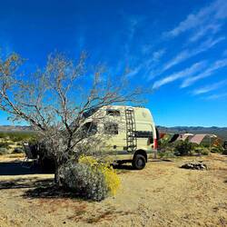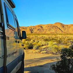Anschließend geht es weiter: Vor dem Südeingang des YOSHUA TREE NP kennen wir schon vom Dez 2024 einen schönen Stellplatz. Hier werden wir mehrere Tage verbringen.