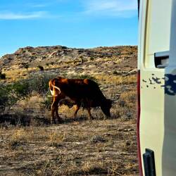 Also fahren wir raus und finden auf BLM-Land ein schönes aber staubigen Plätzchen. Nur Rinder schauen ab und zu vorbei.