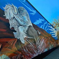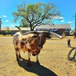 Aufmerksam wurden wir durch "Atlas Obscura": Hier soll vor dem örtlichen Museum das "weltgrößte Brandzeichen" liegen.Lue lisää
