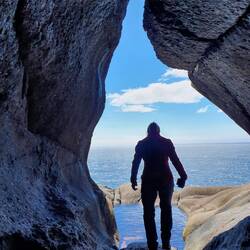 Und dann ging es am Stahlseil herunter zu den BRUFJELLHÅLENEN - ausgespühlten Felsenhöhlen direkt unten an derMeer informatie