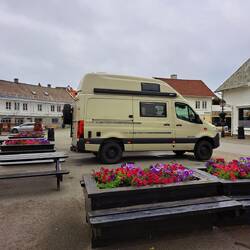 Wir besichtigen das Denkmal "Sverd i Fjell" und bleiben anschließend auf einem ganz in der Nähe gelegenen Parkplatz. Dort darf man bis 2 TageMeer informatie