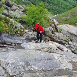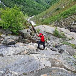Trotz wechselhaftem Wetter haben wir heute eine schöne Wanderung zum Buarbreen-Gletscher gemacht. Der Weg war sehr matschig, rutschig, mit Seilbrücken, Seilen und mit viel Kraxelei🤩. Also schonMeer informatie