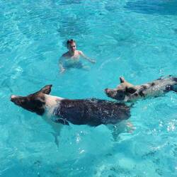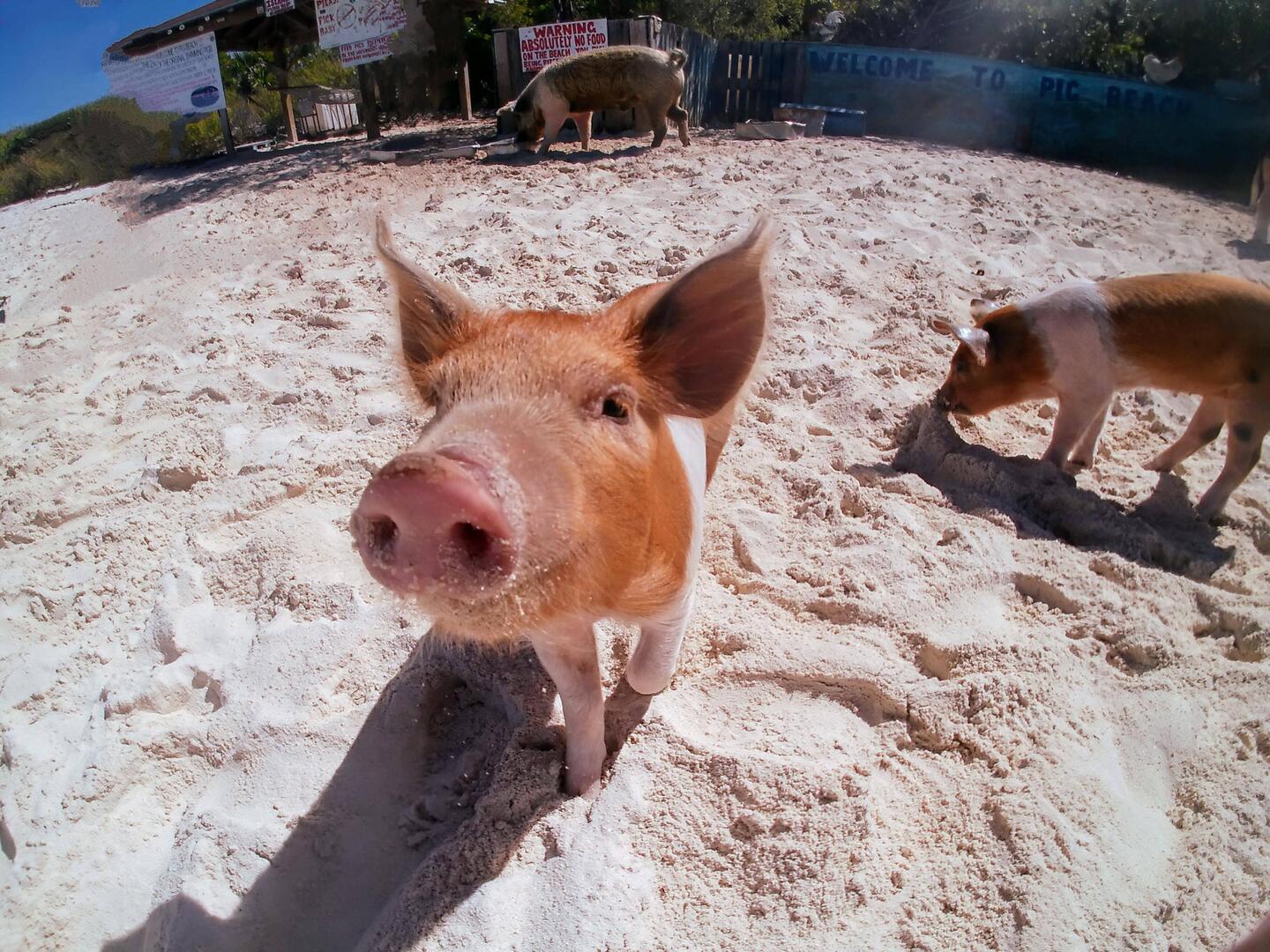 Der nächste Halt unserer Tour war der berühmte Pig Beach bei Big Major Cay – der Ort, an dem man mit frei laufenden Schweinen im kristallklaren Wasser schwimmen kann. Die Tiere kamen neugierig aufRead more