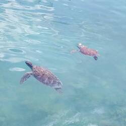 Ein besonderes Highlight war die Möglichkeit, während des Essens Schildkröten im Wasser direkt unter dem Steg zu beobachten. Diese und andere Tiere sind allerdings kein Zufallsfund: Sie werden regelmäßig angefüttert, teils auch von Gästen, die Essensreste ins Hafenbecken werfen.