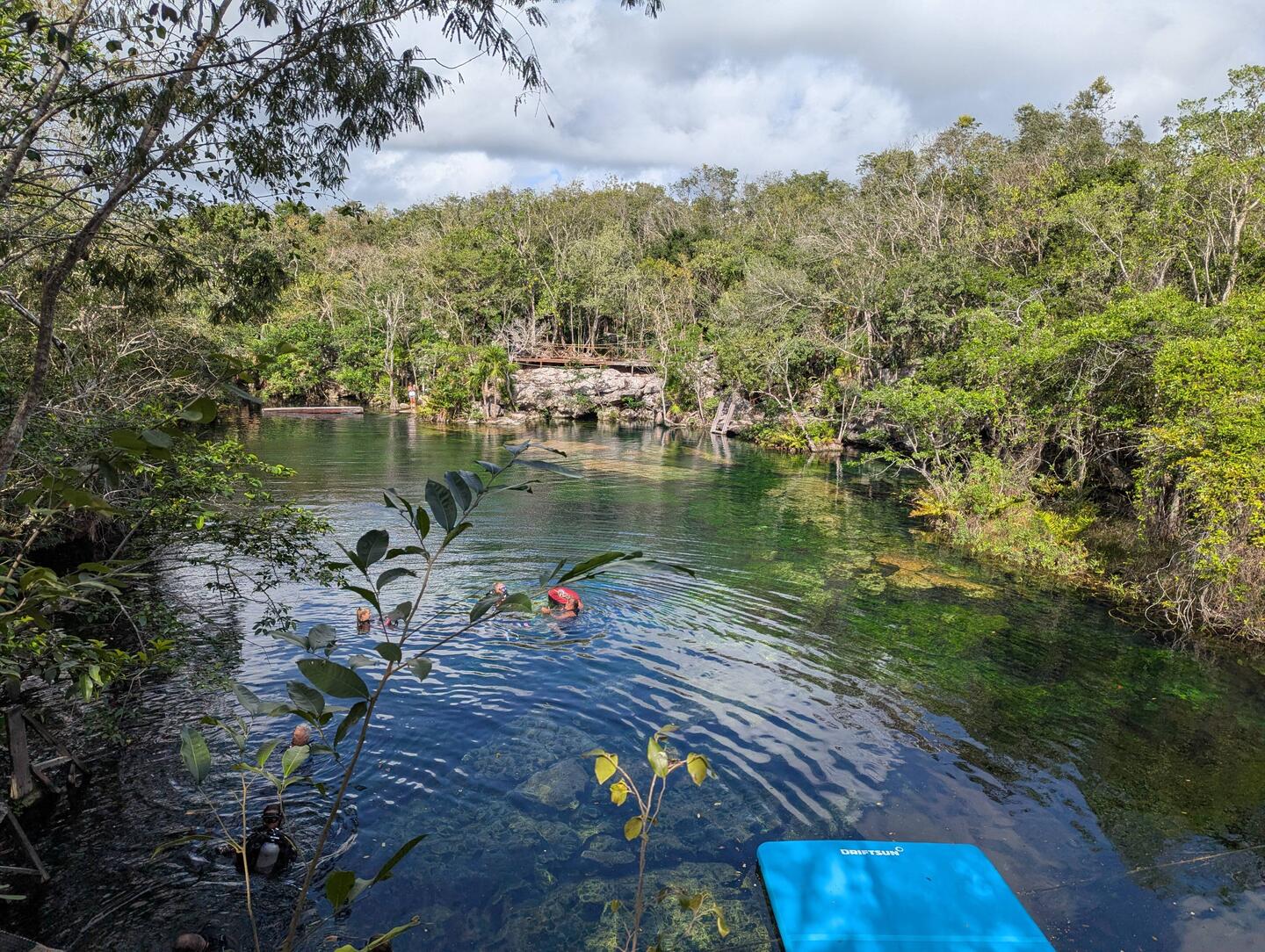 Am Abend liehen wir uns einen Roller aus und fuhren von Tulum ins rund 20 Kilometer entfernte Ciudad Chemuyil – mein Ziel war es, dort als Erster einen Geocache zu finden. Zwar blieb der Geocache unentdeckt, dafür stießen wir durch den Geocache auf zwei kleine, öffentlich zugängliche Cenoten, die offenbar ein beliebter Treffpunkt der Einheimischen sind. Zahlreiche Familien und Kinder verbrachten dort ihren Abend – eine lebendige und authentische Atmosphäre.