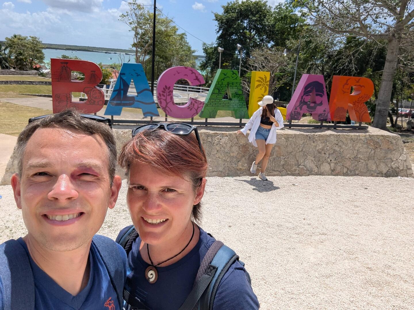 So entschieden wir spontan, einen Tag früher als geplant nach Bacalar weiterzureisen. Die Ruhe am See, das türkisfarbene Wasser und die entspannte Atmosphäre vor Ort boten einen wunderbaren Ausgleich zur geplatzten Tour. Statt Maya-Dschungel gab es also einen Tag Entspannung an der „Lagune der sieben Farben“ – und wir konnten Bacalar ganz in Ruhe erkunden.