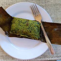 Tamales sind ein traditionelles zentralamerikanisches Gericht, das aus Maisteig besteht, der mit Fleisch, Käse oder in unserem Fall mit Schokolade gefüllt und in Pflanzenblätter (meistens Bananenblättern) eingehüllt gedämpft wird. In Mexiko sind Tamales ein häufig zum Frühstück serviertes Gericht, das von Straßenhändlern in großen Töpfen angeboten wird.