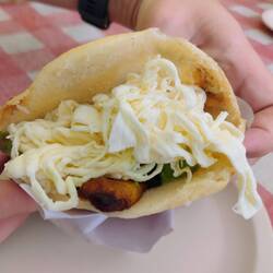 Somit gab es zum Mittagessen leckere gefüllte Maisfladen, sogeannte Arepas. Das Nationalgericht ist Pabellón criollo, bestehend aus Reis, schwarzen Bohnen, Kochbananen und zerkleinertem Rindfleisch.