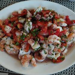 Ceviche besteht in seiner ursprünglichen Form aus kleingeschnittenem, rohem Fisch verschiedener Sorten, der in einem Sud „Leche de Tigre“ mariniert wird. Dieser besteht aus Zitrussaft oder Limettensaft, Salz und Chilis, ebenso weitere Gewürze und Kräuter.