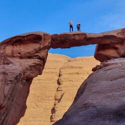 Um Frouth ist eine natürliche Brücke aus Stein und das vielleicht beliebteste Motiv der Wüste Wadi Rum. In etwa 15 Metern Höhe schwebt ein schmaler, frei stehender Fels-Steg imposant zwischen denLeggi altro