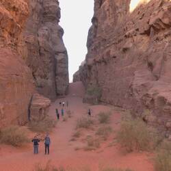 Der Siq Trail im Wadi Rum ist eine beliebte Wanderung durch eine atemberaubende Schlucht. Der Siq, was im Arabischen "Schlucht" bedeutet, ist ein enger, natürlicher Korridor zwischen hohenLeggi altro