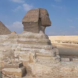 Die Große Sphinx von Gizeh in Ägypten ist die mit Abstand berühmteste und größte Sphinx. Sie stellt einen liegenden Löwen mit einem Menschenkopf dar und wurde vermutlich in der 4. DynastieLeggi altro