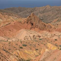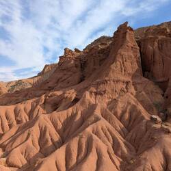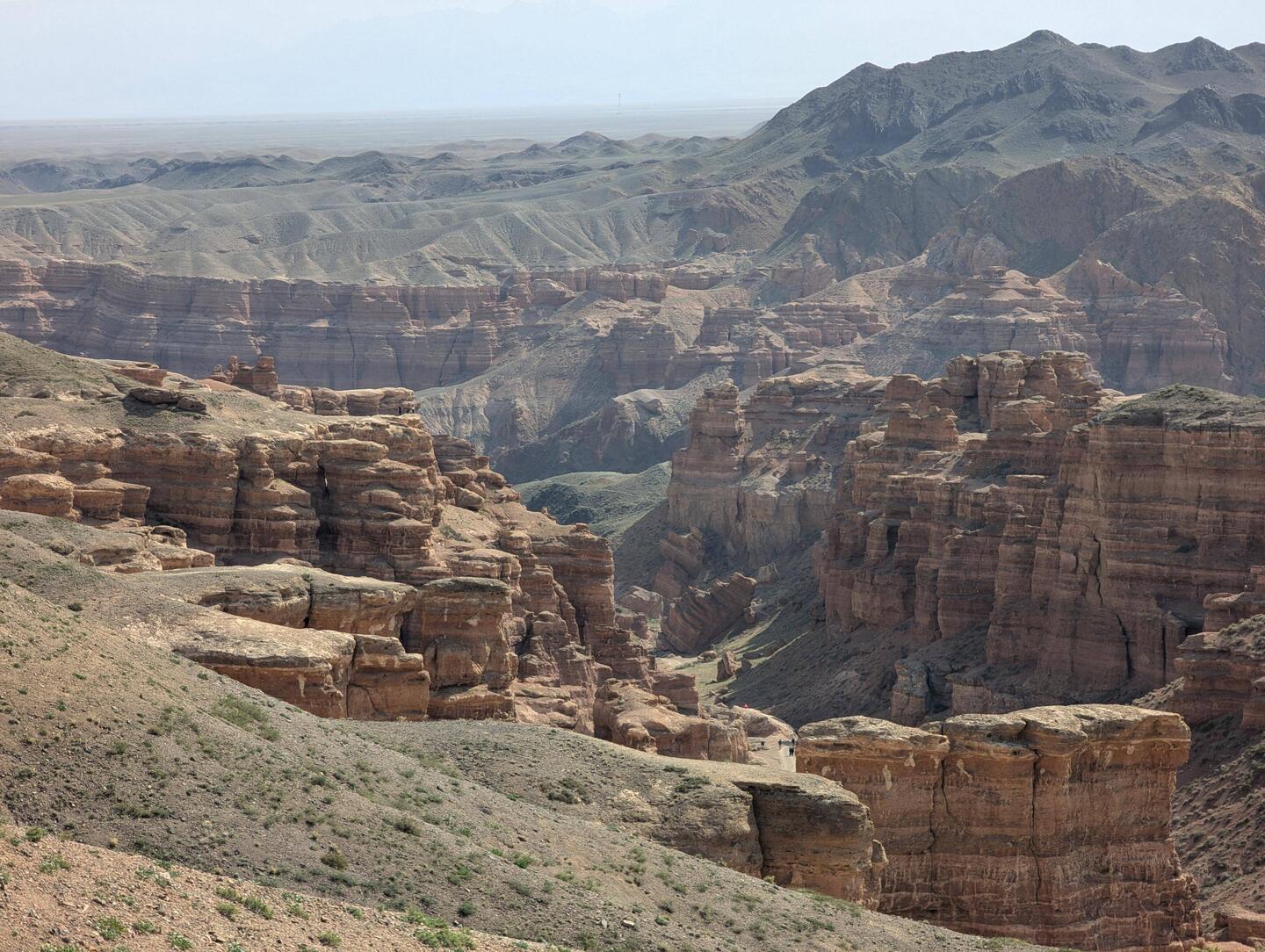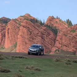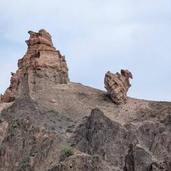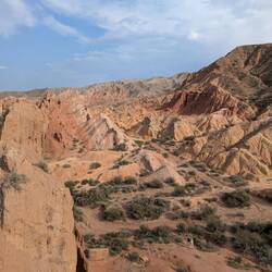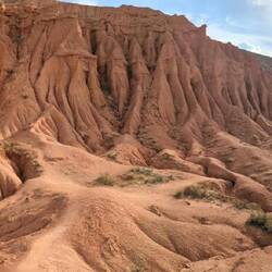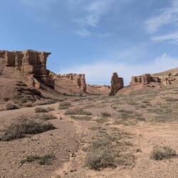 Es stand das nächste Naturwunder auf dem Plan, der Charyn Canyon. Bei bestem Wetter konnten wir die 2 km vom Parkplatz in den Canyon zurücklegen. Der Weg selbst war schon faszinierend und führte durch eine Schlucht, die mit den verschiedensten Formen und Farben aufwartete. Steine die zu schweben scheinen, Höhlen und Kavernen und etliche Seitenschluchten.