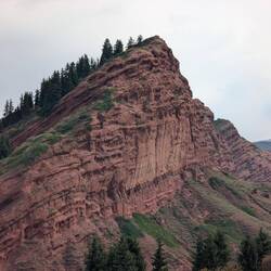 Erster Halt des Tages waren die Seven Bull Rocks. Eine Gesteinsformation aus rotem Sandstein die schräg geschicht faszinierende Klippen bildet.