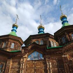 Die Christi-Himmelfahrt-Kathedrale wurde zwischen 1904 und 1907 erbaute und befindet sich in der Mitte des Parks der 28 Panfilowzy und gilt als eines der Wahrzeichen der Stadt Almaty. Sie ist die höchste orthodoxe Holzkirche der Welt und bietet Platz für knapp 2000 Menschen.