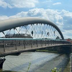 We meandered about the old town. Went around the end opposite the castle to find original defensive walls and building. When asking the ticket lady if Daisy could come, “meh, why not?” So DaisyLes mer
