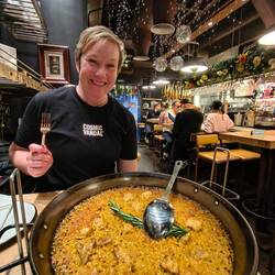 Dinner at La Taberna el Gourmet. Is on Michelin list and was v busy, were lucky to get a table near bar. Ordered paella to share (23E each), waited ages as is customary with paella but they gave us a chicken one so had to then wait again for correct one. They were v apologetic and gave us some tapas while we waited. Wasn't v impressed by dish - so salty! Disappointing meal.