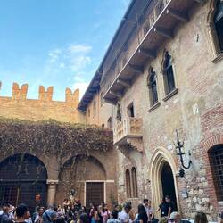 Całą niedziele mieliśmy w Weronie pełne słońce, co zachęcało do jej eksplorowania. Pojechaliśmy zobaczyć zamek - Castel Vecchio, weszliśmy do środka oraz spacerowaliśmy jego murami. PotemMeer informatie