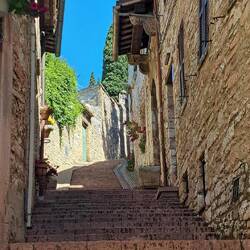 Questa mattina, dopo un'ottima colazione in Camper, abbiamo preso un autobus per raggiungere Assisi (molto comodo, passa quasi davanti all'area camper).