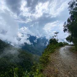 Während 3 Stunden sind wir abwärts über Steine, scharfe Kurven und durch kleinere Wassefälle gefahren. Mit jeder Kurve stiegen die Temperaturen und die Luftfeuchtigkeit. Während der Fahrt werden fast alle Klimazonen Südamerikas durchquert.:)