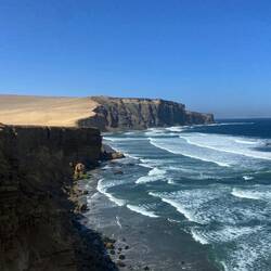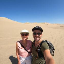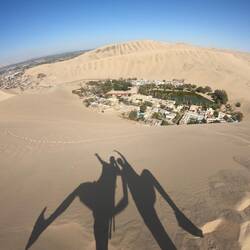 Oasis Huacachina: Vor der Stadt Ica liegt die kleine Wüstenstadt Huacachina, wo man zu Fuss oder mit einem Buggy durch die Sanddünen fahren kann. Wir sind zu Fuss im heissen Sand umher gewandert und haben die Aussicht von Oben genossen. Grösster Spassfaktor war das Hinunterrennen im Sand, ging etwas schneller als das hinaufgehen. ;)
