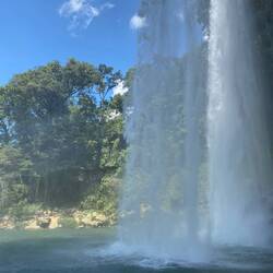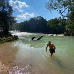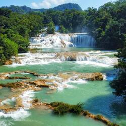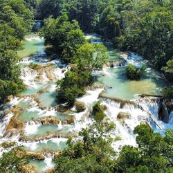 Am zweiten Tag wurden wir von eine Shuttle abgeholt, welcher uns mit ein paar anderen Touristen zum Wasserfall Misol-Ha gebracht hat. Schnell eine halbe Stunde „herumwatscheln“, ein paar Fotos schiessen und weiter ging die Fahrt. Der zweite Stopp war Agua Azul, ein Wasserbecken mit zahlreichen, eindrücklichen Wasserfällen. Hier konnten wir ins kühle Nass springen, für ein paar Stunden verweilen und die Umgebung geniessen.