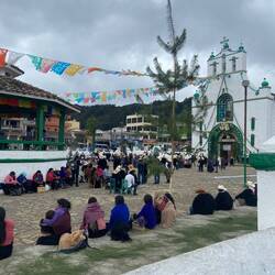 Im Anschluss ging es mit dem Shuttle weiter bis zu einer Kreuzung. Hier wurde die Gruppe aufgeteilt, einige gingen zurück nach Palenque und wir weiter nach San Cristobal de las Casas. Die 20-minütige Wartezeit war nach mexikanischen Uhren berechnet, nach gut einer Stunde warten inklusive Bewachung von 6 bewaffneten Polizisten, kam der neue Shuttle. Die Rucksäcke wurden aufs Dach geschnallt und los ging die Fahrt durch eine hügelige Landschaft mit zahlreichen Betonbumps 😅. In einem kleinen Dorf war plötzlich Kolonnenverkehr und zahlreiche Männer standen um unseren Bus herum. Nach einem regen Wortwechsel und Bezahlung der Männer, konnten wir weiter fahren. Ein Spanier, welche die Situation besser verstanden hat, hat uns erklärt, dass der Fahrer bei der letzten Polizeikontrolle die Polizisten gefragt hat „ob sie heute stehen“, diese wussten es nicht…anscheinend sind sie gestanden und mit einer Zahlung von 500 mexikanischen Pesos durften wir glücklicherweise weiter fahren. Bestechung und Korruption ist auch hier ein grosses Thema.