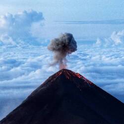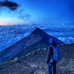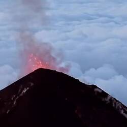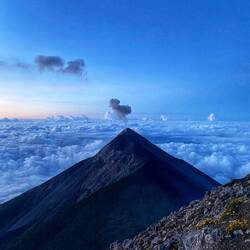 Morgens um 4.00Uhr ging dann auch schon der Wecker ab, um noch den Acatenango vollständig zu „erklimmen“ und so den wunderschönen Sonnenaufgang zu sehen. El Fuego hat dann auch noch einen ordentlichen Morgenkracher abgelassen, welcher Röschu zufälligerweise mit der Kamera festhalten konnte.