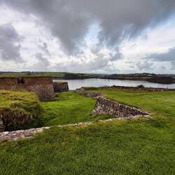 We lopen Featherbed Lane helemaal uit en komen zo op de weg naar Charles Fort. Het fort is een immens, stervormig bouwwerk dat ooit de Ieren moest beschermen tegen Spanjaarden en Fransen. Dat waren nog eens tijden: de vijand kwam meestal per schip. Niks geen drones.