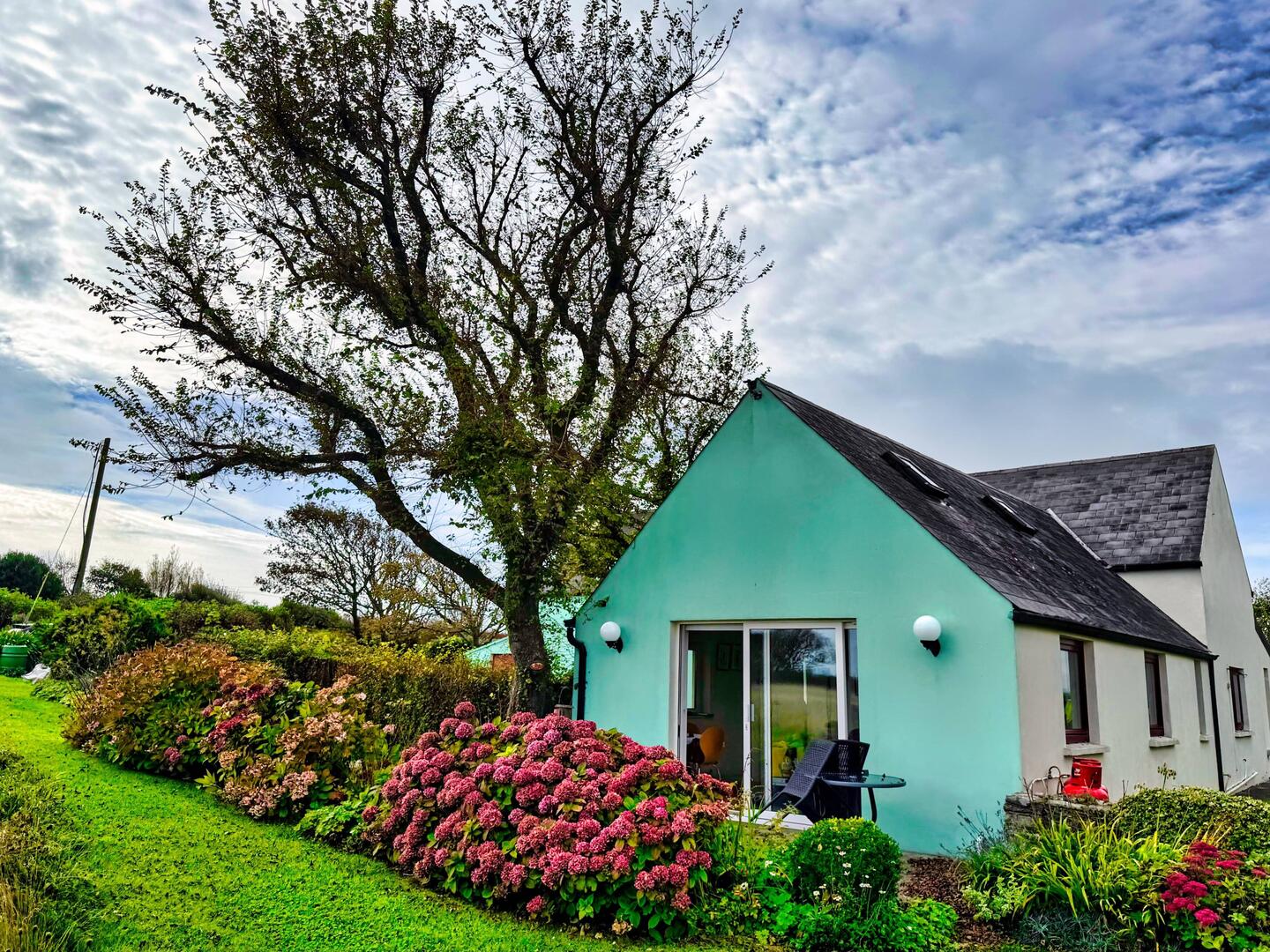 Ons huisje ligt zo’n tien kilometer onder Clonakilty, net ten zuiden van Ardfield. Aan een afgelegen landweggetje ligt de Wild Atlantic Hideaway: een klein huisje, helemaal alleen, met uitzicht over de weilanden en, in de verte, de oceaan. Onder ons raam loopt het Ierse rundvlees van straks al te grazen. Zalige plek. Doodstil. En dat allemaal voor nop — we doen dit via huizenruil.