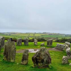 We rijden verder. Het blijft maar regenen, maar in de auto heeft het ook zijn charme: verlaten wegen, dreigende luchten, golven langs de kust die omhoog slaan door de wind. Onderweg maken we een omweg langs een vervallen kasteel, en stoppen we bij de Drombeg Stone Circle, een cirkel van 17 stenen uit de Bronstijd. De steenkring is ook bekend als de Druid’s Altar en staat op een rand langs de kust, met restanten van oude hutten en een fulacht fiadh (een prehistorisch kookvuur). Altijd weer bijzonder om er te staan en je af te vragen: hoe dan?