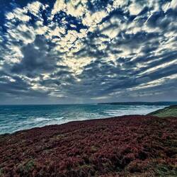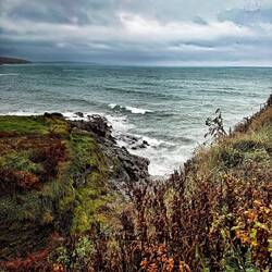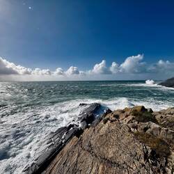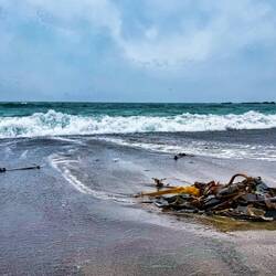 Rustig door de buien rijdend via een omweg langs de kliffen terug naar onze Hideaway. Langs de kust zien we de hoge golven hun witte koppen tegen de rotsen kapot slaan. Storm op komst.