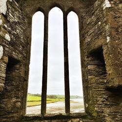 ’s Middags volgt een langere wandeling langs de monding van de Argideen-rivier. We starten bij de vervallen abdij Timoleague (De abdij bij de riviermonding is Timoleague Abbey, gesticht in de 13e eeuw door franciscanen. Tot ver in de 17e eeuw werd hier gebeden en geleerd, tot Cromwell’s troepen de boel verwoestten. De ruïne is sindsdien een stille getuige van die geschiedenis) en lopen door tot de rivier in zee uitmondt. Onderweg liggen de kwelders vol vogels, net een levend schilderij. Met zo’n 18 graden, een licht zonnetje en flink doorstappen voel je het zweet toch op je rug parelen..