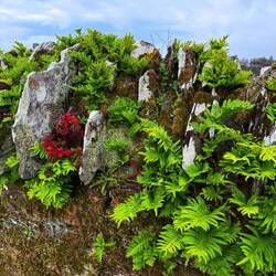 Smalle weggetjes, links een donkergrijs muurtje begroeid met mos, varens en wilde bloemen, en daarachter baaien, kliffen en de open Atlantische Oceaan. De ene bocht nog mooier dan de andere — het soort weg waar je langzaam móét rijden, uit noodzaak én bewondering.