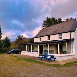 We maken nog wat toertjes: door Skibbereen, langs Castlefreke House, en langzaam dalen we af naar ons hutje om alles te drogen. Kleren, schoenen, rugzak — alles hangt aan de deuren. Onderweg valt ons trouwens op hoeveel snelheidscontroles er zijn in Ierland: ze noemen ze GoSafe-zones en ze liggen werkelijk overal. Een land dat bekendstaat om zijn kronkelwegen en smalle bruggetjes vertrouwt dus liever op camera’s dan op gaspedaaldiscipline. En dat terwijl je op de smalste weggetjes 100 km mag, en in dorpen vaak nog 60 km mag scheuren.