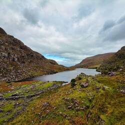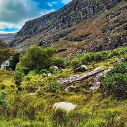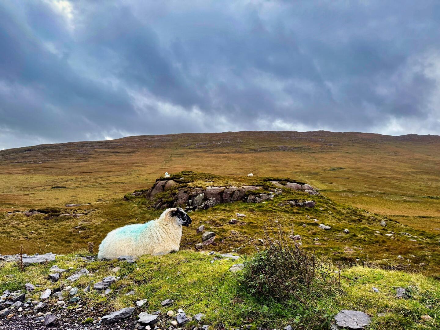 We stijgen langzaam verder, met de echo van onze voetstappen en af en toe een schaap dat vrolijk meeblaat. Een reetje heeft zich liefelijk bij een kudde schapen gevoegd. Op bijna alle rotswanden zijn door de regen van de afgelopen dagen kleine watervalletjes ontstaan. Na bijna twee uur bereiken we de Head of the Gap, waar de Black Valley zich opent: leeg en groots tegelijk, alsof je in een schilderij bent gestapt.
