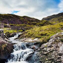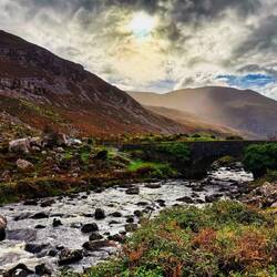 Daarna trekken we te voet de Gap of Dunloe in. Deze bergpas is nog spectaculairder dan Moll’s Gap, wat smaller en intiemer. Het pad is uitgesleten door gletsjers en slingert tussen de Purple Mountain en de ruige toppen van de MacGillycuddy’s. We lopen langs riviertjes, stenen bruggetjes en kleine meren die elkaar opvolgen als kralen in een snoer. Op de beroemde Wishing Bridge fluisteren bezoekers hun wensen, hopend dat de echo ze meeneemt. Auto’s zijn er zeldzaam, maar je deelt de weg met paardenkoetsen, fietsers en wandelaars.