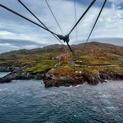 We rijden verder naar het uiterste westen van het schiereiland, tot waar de kabelbaan naar Dursey Island begint. Het is Ierlands enige kabelbaan over zeewater en ooit bedoeld om het eiland bewoonbaar te houden voor de paar gezinnen die er woonden. Later vervoerde de kabel zelfs schapen en kalveren. Dat mag tegenwoordig niet meer, wat waarschijnlijk beter is voor iedereen met hoogtevrees.