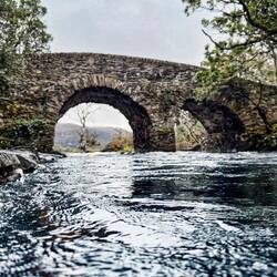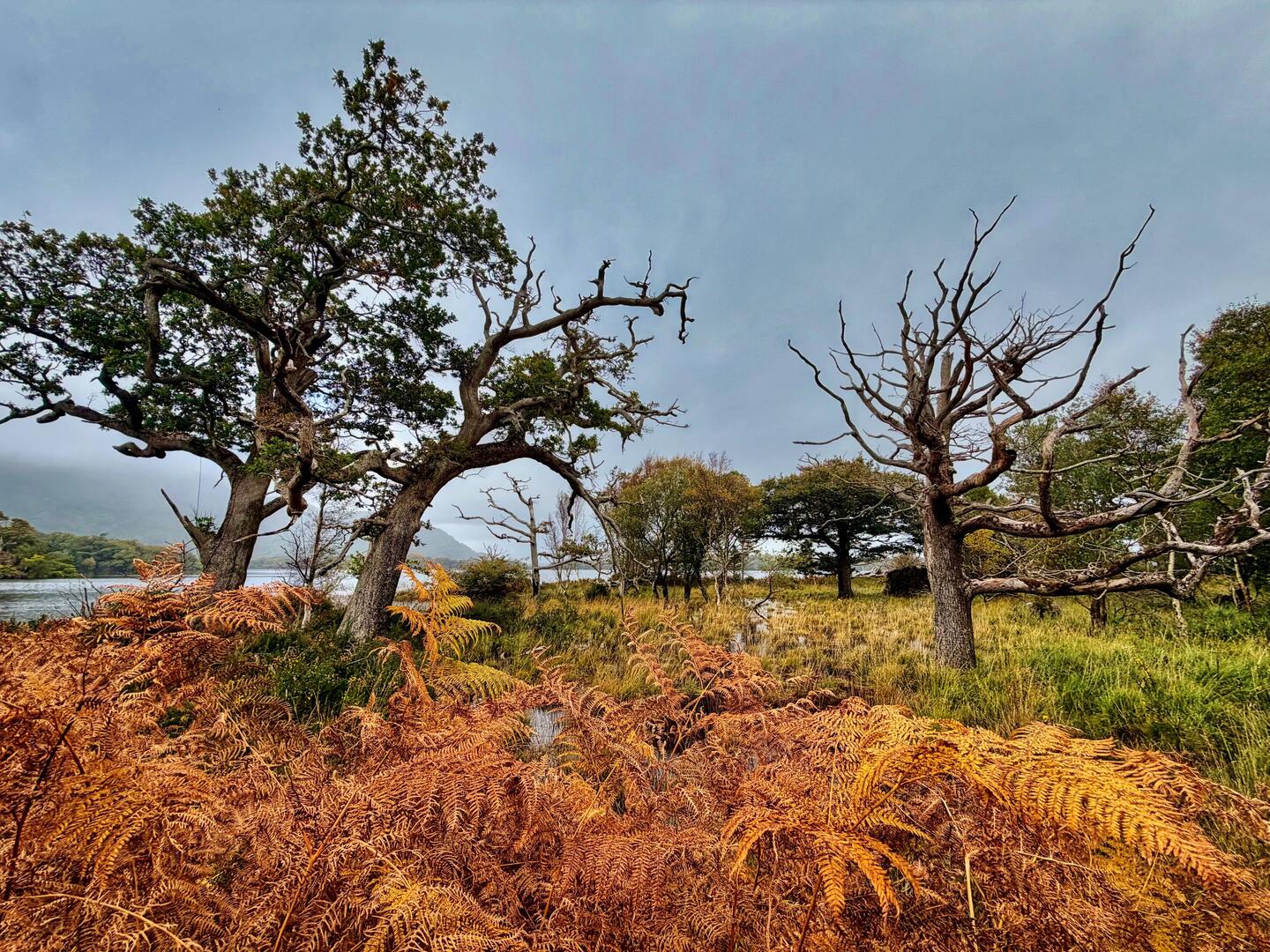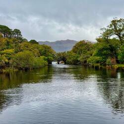 In de middag maken we een wandeling door een sprookjesbos. De bossen hier lijken elk moment door elfjes of kabouters overgenomen te kunnen worden. De sfeer is altijd een beetje mysterieus. We volgen een pad langs de oever van het meer en na een halfuur over paden, rotsen en houten planken verschijnt de Old Weir Bridge tussen de bomen. Het is een verweerde stenen boogbrug uit de zestiende eeuw, gehavend maar nog altijd trots overeind. Hij staat precies bij de Meeting of the Waters, waar de drie meren van Killarney elkaar vinden en samenvloeien.