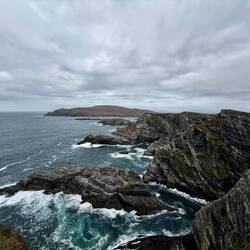 We sluiten ons bezoek aan de "Ring of Kerry" af met een wandeling langs de ruige, 290 meter hoge "Cliffs of Kerry", net ten zuiden van het eiland. Gekmakend mooi uitzicht.