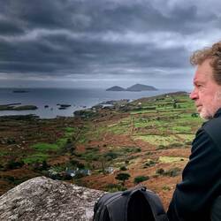 Na een wat tegenvallende lunch in een cafetaria-achtige setting (The Fisherman Café, aanbevolen door James zat helaas vol) rijden we via de brug Valentia Island op. Wat een eiland. Flinke heuvels, waanzinnige uitzichten en prachtige verhalen. Hier zijn de versteende pootafdrukken gevonden van een primitieve viervoeter, een tetrapode, 385 miljoen jaar oud. Een van de eerste stappen van een dier dat probeerde te leven op land.