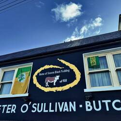 Het valt nog steeds met bakken uit de hemel, dus op naar de volgende attractie: de Bloedworst-experience van de Clonakilty Blackpudding-makers.