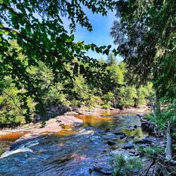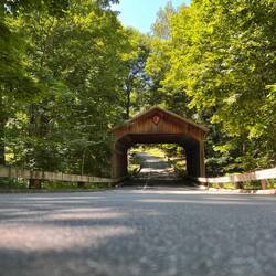 We rijden nog een kilomer of 20 over de scenic route door het park over kronkelweggetjes, over mooie overdekte bruggetjes en maken nog een paar kleine hikes.