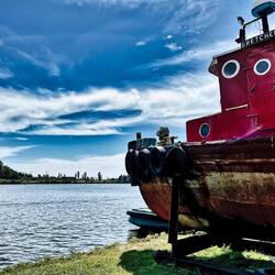 Via de Noordzijde de winkelstaart weer terug gelopen en flink geshopt. We worden door Robbie nog even vakkundig langs de bootjes aan de waterkant geleid om daarna weer in de auto te stappen. Raar idee, dat ze hier bijna dagelijks door de straten sjouwde met haar eigen possie. T'is een charmant stadje, al neemt langzaam de toeristenwinkel het hier ook over van de kleine 1 persoons winkeltjes. Dat kersen belangrijk zijn voor deze streek mag helder zijn (Cherry capital of the world), maar om nou overal kersen in te stoppen en ze te pas en te onpas in winkeltjes te leggen, is misschien iets te veel van het goede. We zagen kersenjam, kersen sap, kersen in chocolade, in droge worst, in kaassaus, in limonade, in zeepjes, in granola, in hondenvoer, in bier, in BBQ saus, in taarten, in mosterd, in ijs, in koekjes, in drop, in mierikswortelsaus, in jelly, in azijn, in ahornsiroop, in scones, in honing, in boter. Het ergste is, ik hoef niks geks te verzinnen, het is er allemaal echt.